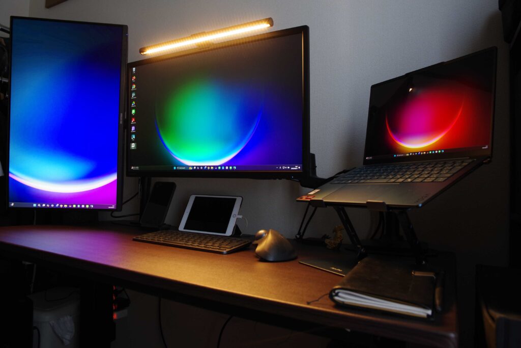 もともと使っているBenQのデスクライトの色温度を変えればこれがこう。