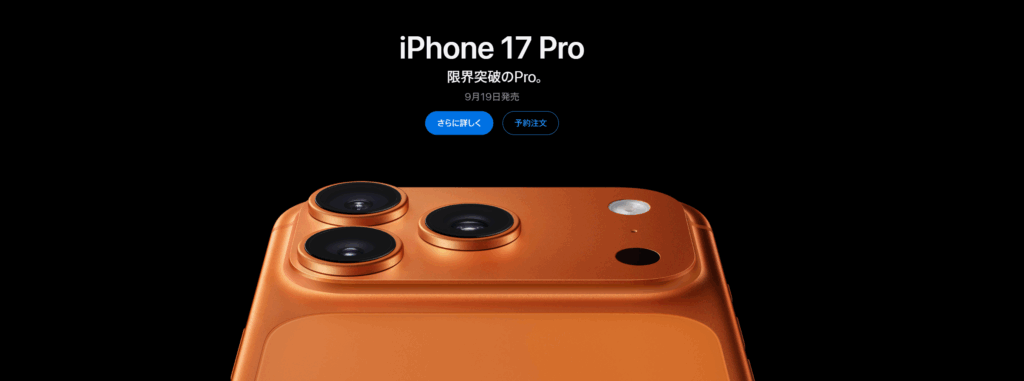 僕の個人的な感想としては、上の画像のiPhone17Proのみに設定された限定色「コズミックオレンジ」かっこいいなーくらいですかね。