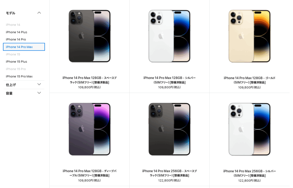 Appleの整備済み品のページを見てみると、14promaxと15promax、あります(20250914時点)。256GBで13万円切っているので、画面サイズとバッテリー重視であれば17を買うよりこっちがいいかも。