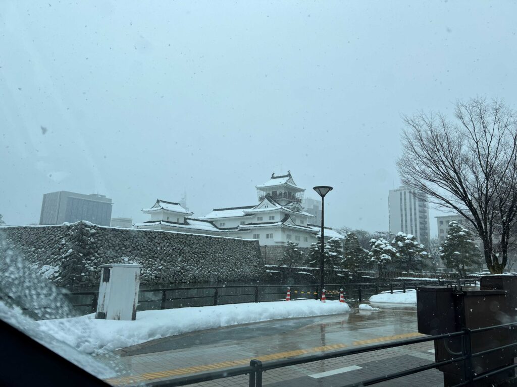 部屋からの景色。雪が降り続けていたけど主要な道路では水が排出されてすぐに溶けていく。山形のように雪で道路がぐちゃぐちゃになるということはなさそう。