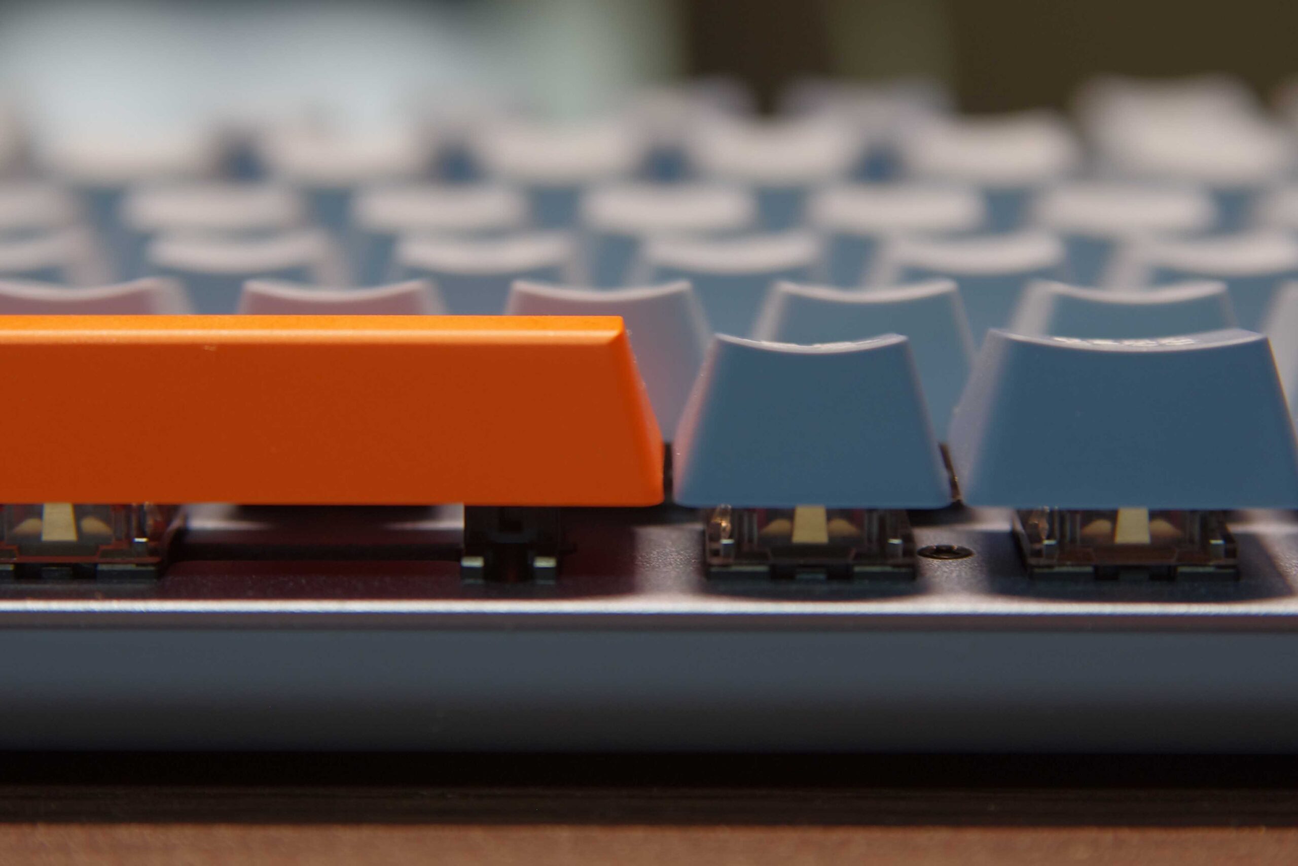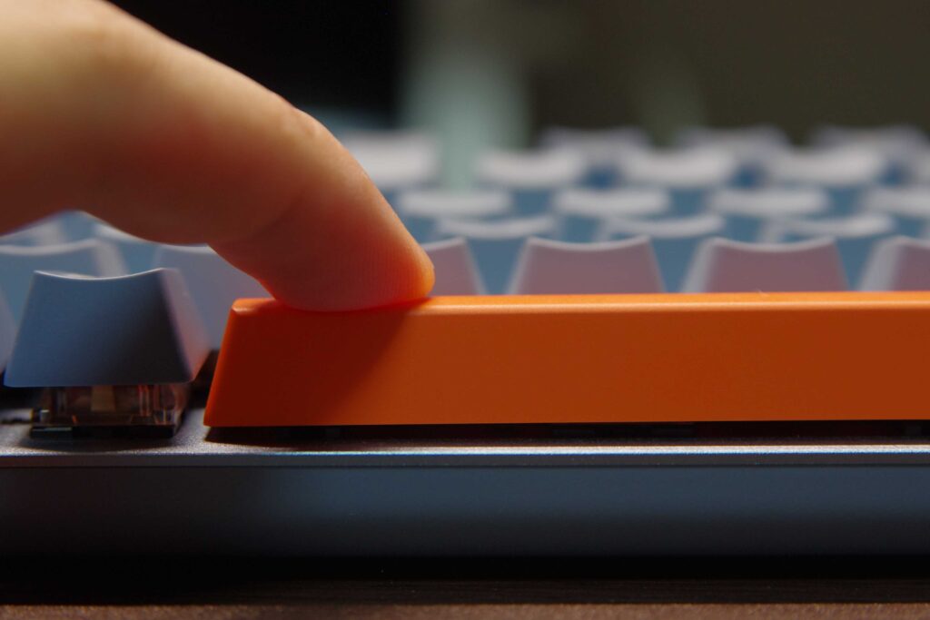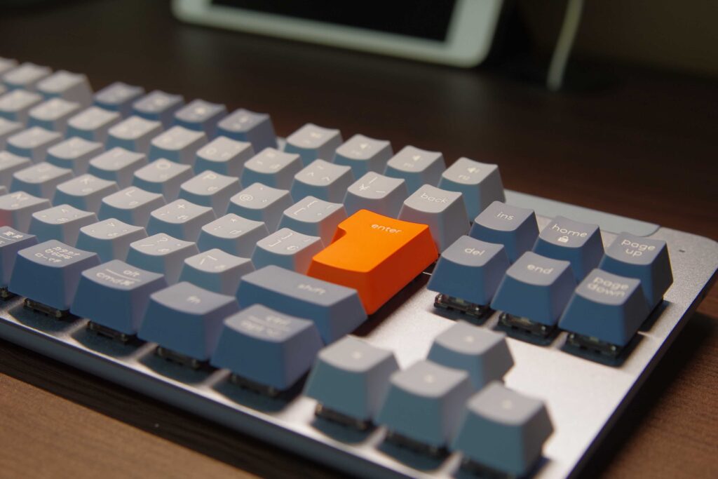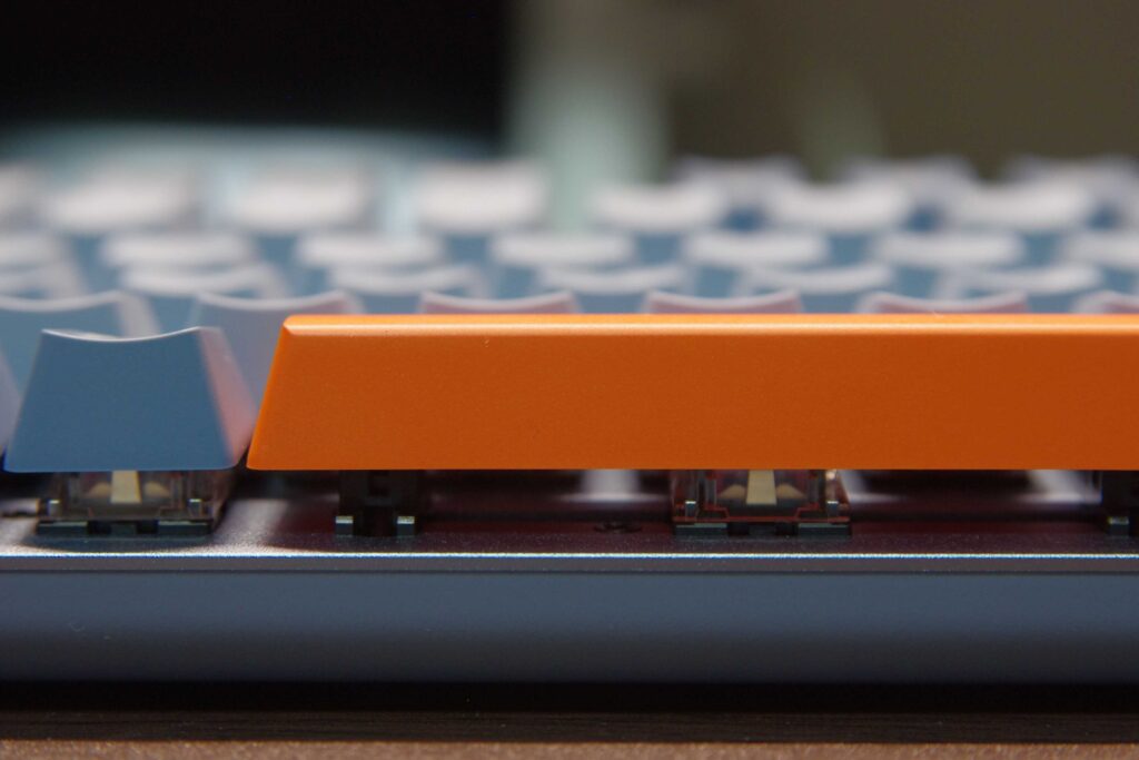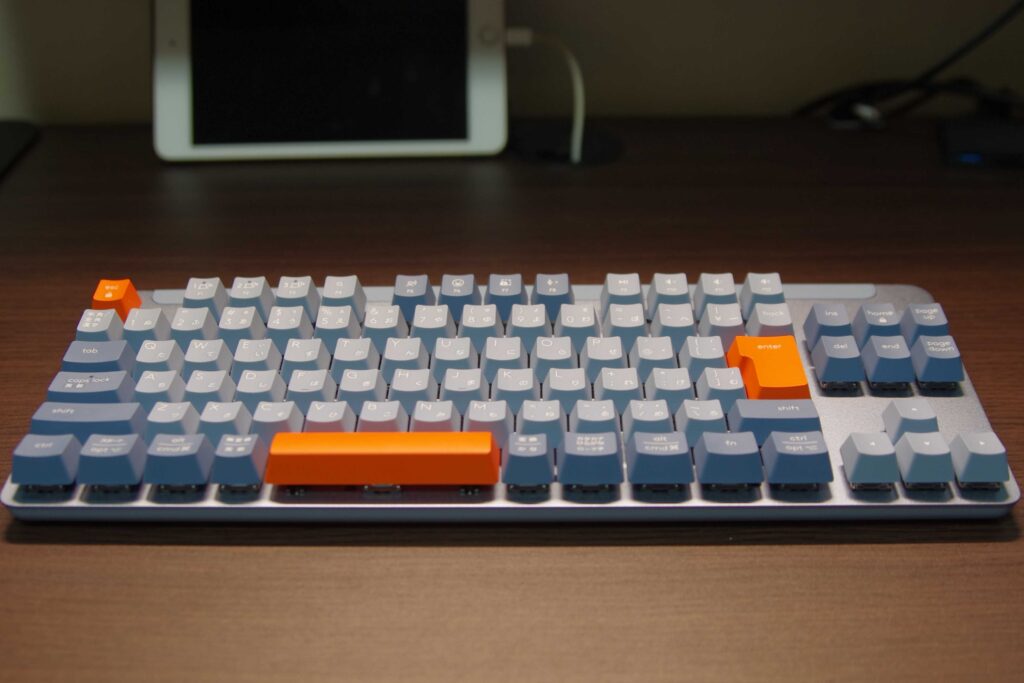 オレンジ色のキーがアクセントでチカチカしそうなデザインですが、僕の机は暗めなので案外このくらいのデザインのほうが合っていたなと。